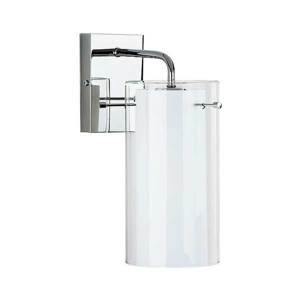 Lampa wykonana z metalu oraz szklanego klosza w kształcie walca w kolorze transparentnym.