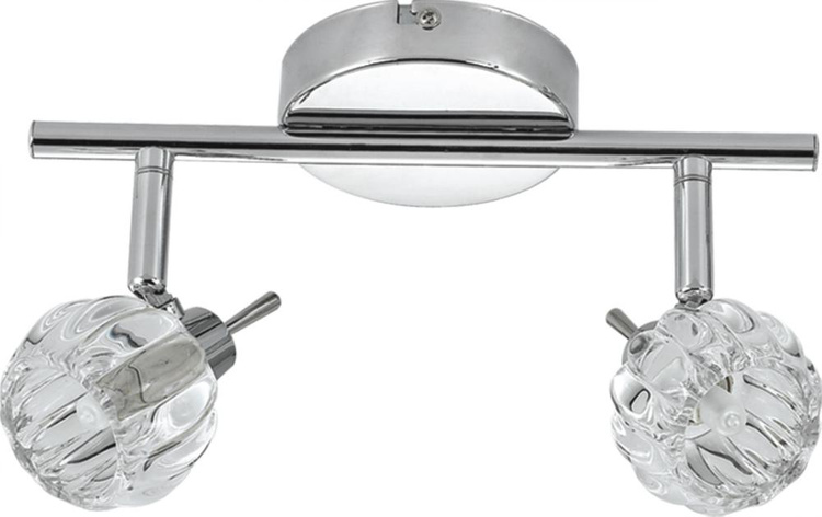 BOMBOLA 92-70296 to nowoczesna lampa sufitowa z dwoma źródłami światła. Wykonana została z wysokiej jakości metalu w kolorze chromowym. Lampa posiada dwa kuliste, kryształowe klosze osadzone na ruchomych przegubach, które dają możliwość regulacji ich położenia. Oprawa będzie idealnym wyborem do klasycznych oraz nowoczesnych wnętrz. Doskonale będzie się prezentować w: salonie, jadalni, sypialni, pokoju młodzieżowym, gabinecie, biurze, lokalu, przedpokoju, korytarzu. Wysokość lampy to: 13,5 cm, szerokość 31 cm, głębokość 8 cm. Źródłem światła jest żarówka typu G9 o mocy max 40W w ilości 2 szt.