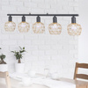 Pięć punktów świetlnych zamontowanych na ramieniu zamontowanym do okrągłej podsufitki.