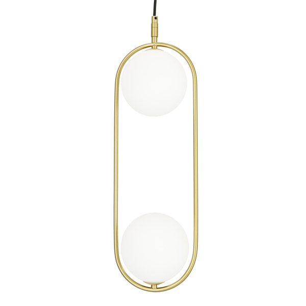 CORDEL 32-73464 to stylowa lampa wisząca z dwoma źródłami światła. Zawiesie lampy wykonano z wysokiej jakości stali w kolorze mosiężnym, klosze są z białego szkła. Oprawa będzie idealnym wyborem do wnętrz urządzonych w stylu klasycznym oraz nowoczesnym. Doskonale będzie się prezentować w salonie, jadalni, sypialni, pokoju, młodzieżowym, gabinecie, lokalu, kuchni. Dużym atutem jest możliwość regulacji wysokości. Wysokość maksymalna lampy to: 140 cm, szerokość 18 cm, głębokość 15 cm. Źródłem światła jest żarówka typu G9 o mocy max 28W w ilości 2 szt.
