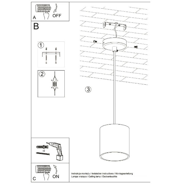 Szybki i praktyczny montaż - Lampę wiszącą zamocuje się na suficie szybko i bez wysiłku dzięki praktycznemu montażowi.