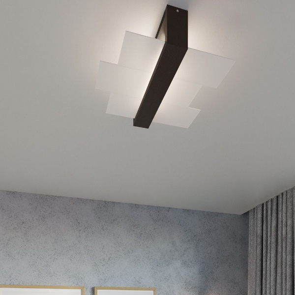 Plafon Sollux FENIKS 2 jest lampą sufitową dwu punktową ( E27, 2 x 15W LED ). Została wykonana z drewna w kolorze wenge oraz matowymi szybami.