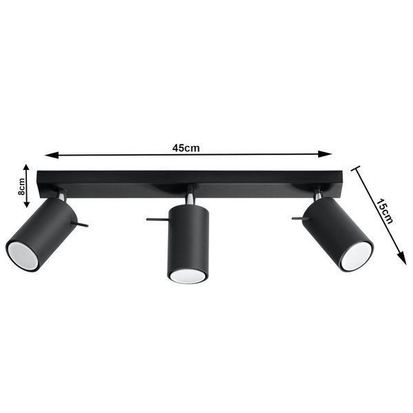 Plafon RING jest lampą 3 punktową o mocy 12W LED każda ( GU10, 3 X 12W LED). Lampa wykonana jest z stali w kolorze czarnym.