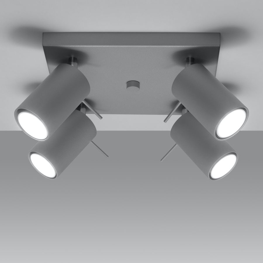 Plafon RING jest lampą 4 punktową o mocy max. 40 W każda ( GU10, 4 X 40 W ). Lampa wykonana jest ze stali w kolorze szarym.