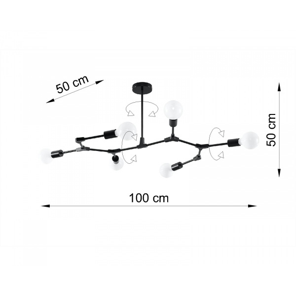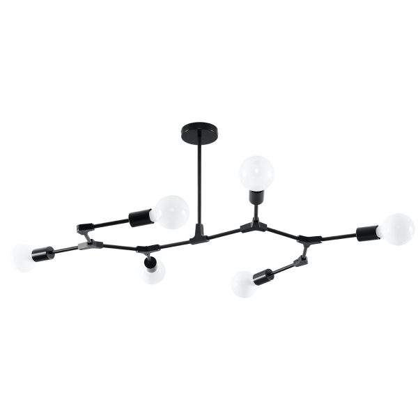 PLATO 6 SL.0709 to nowoczesna lampa sufitowa z sześcioma źródłami światła. Wykonana została z wysokiej jakości stali w kolorze czarnym. Żyrandol posiada możliwość regulacji położenia źródeł światła. Będzie idealnym wyborem do wnętrz urządzonych w stylu industrialnym oraz loftowym. Doskonale będzie się prezentować w: salonie, jadalni, sypialni, pokoju młodzieżowym, gabinecie, biurze, lokalu, korytarzu. Wysokość lampy to: 50 cm, szerokość 100 cm, głębokość 50 cm. Źródłem światła jest żarówka typu E27 o mocy max 60W w ilości 6 szt.