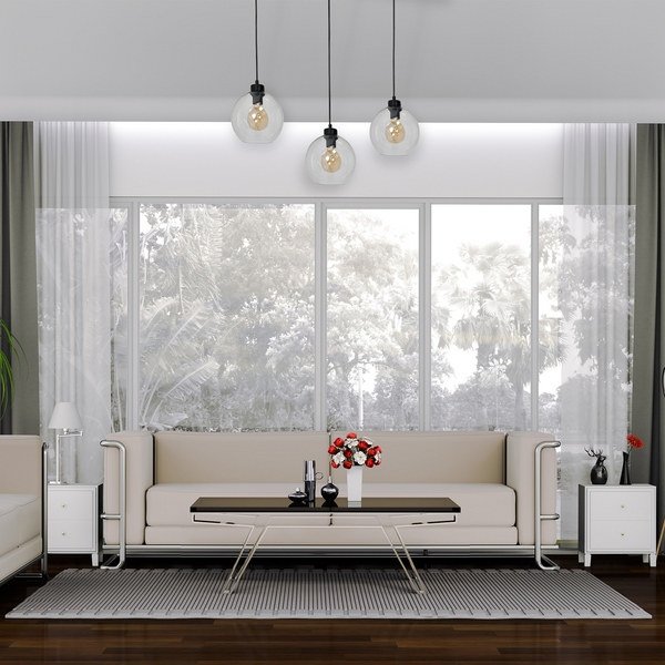 Lampa posiada trzy klosze na żarówki E27 (brak w zestawie).