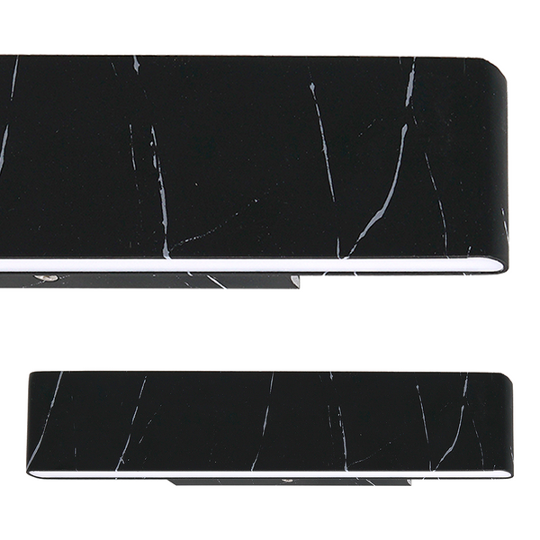 PIERCE BLACK ML6471 to lampa ścienna w nowoczesnym stylu. Wykonana została z wysokiej jakości metalu i tworzywa sztucznego w kolorze czarnym. Klosz lampy stanowi podłużna belka z tworzywa sztucznego imitującego marmur. Lampa doskonale będzie się prezentować w każdym pomieszczeniu. Może stanowić uzupełnienie lamp wiszących tej serii jak i być oddzielnym elementem wystroju wnętrza. Wysokość kinkietu to: 8 cm, szerokość 30 cm, głębokość 4 cm. Źródłem światła jest wymienny moduł 12W LED 720lm 4000K. Źródło światła dołączone w zestawie.