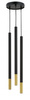 Nowoczesna lampa wisząca SOPEL DUE 3 to wisząca lampa z 3 źródłami światła. Wykonana jest ze stali lakierowanej w kolorze czarnym oraz zakończeniami mosiężnymi w kolorze złotym. Wiszące czarne sople wykończone zostały złotymi elementami nadającymi wyjątkowości. Połączenie to sprawia, że wnętrze nabiera niezwykłego wyglądu. Lampa nada charakteru wnętrzom minimalistycznym jak i klasycznym w jadalni, salonie, sypialni, biurze. Regulowana wysokość każdego sopla pozwala dostosować lampę według indywidualnych potrzeb. Maksymalna wysokość lampy 100 cm, szerokość klosza 16 cm. Wysokość sopla 50 cm, a średnica 2,5 cm.