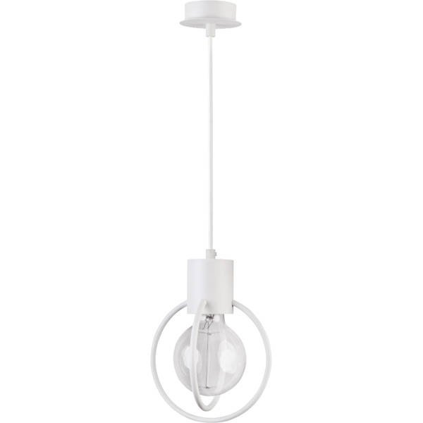 AURA KOŁO 1 ZWIS to nowoczesna lampa wisząca z jednym źródłem światła. Korpus lampy wykonano ze stali lakierowanej na kolor biały. Klosz lampy jest koloru białego i posiada dwa prostopadle ułożone pierścienie z drutu wokół żarówki. Dodatkowym elementem ozdobnym jest w tej lampie żarówka, dlatego warto zdecydować się na jej dekoracyjne modele. Biel świetnie się sprawdza w każdym wnętrzu, zastosowanie oświetlenia w tym kolorze dodaje elegancji i subtelności. Lampa jest idealnym wyborem do nowoczesnych oraz loftowych wnętrz. Doskonale wpasuje się do: pokoju młodzieżowego, gabinetu, biura, lokalu, jadalni, salonu, sypialni. Dodatkowym atutem jest możliwość regulacji wysokości. Wysokość maksymalna lampy to: 100 cm, szerokość 16,5 cm, głębokość 15 cm. Wysokość klosza to 21 cm. Źródłem światła jest żarówka typu E27 o mocy max 60W w ilości 1 szt.