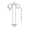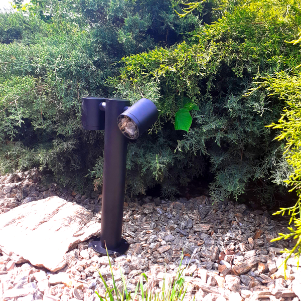 Lampa ogrodowa posiada miejsce na dwie żarówki oznaczone jako GU10, jednak należy je dokupić osobno.