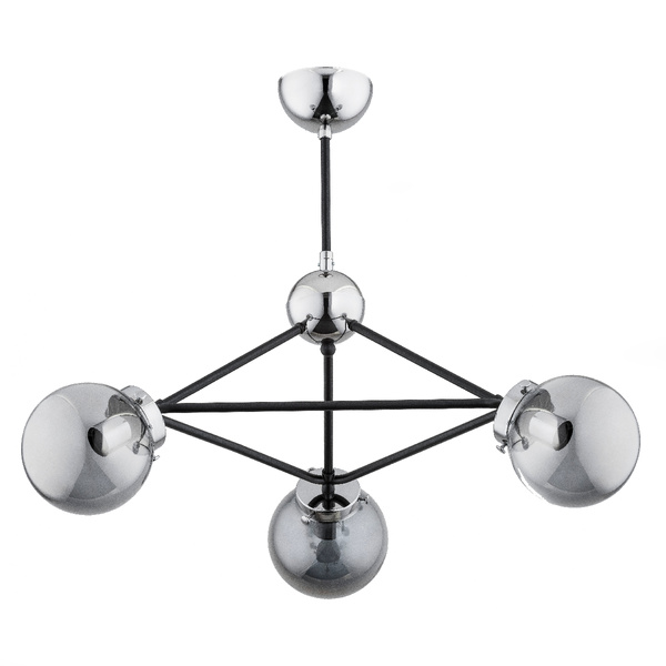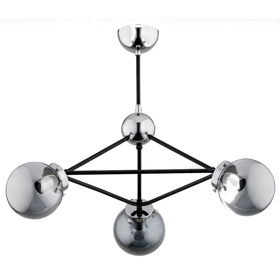 Niestandardowa konstrukcja i ciekawy design lampy w połączeniu z ozdobnymi kloszami,