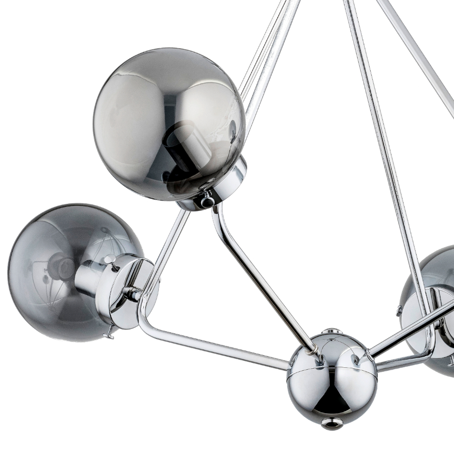 Niestandardowa konstrukcja i ciekawy design lampy w połączeniu z ozdobnymi kloszami,