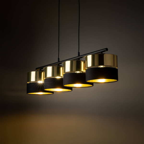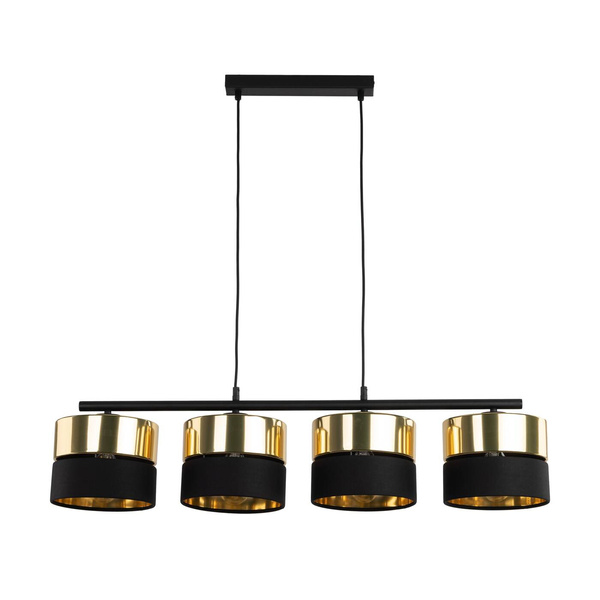 Lampa wisząca HILTON to połączenie elegancji i nowoczesności. Jej abażury łączą klasyczną czerń z oryginalnym kolorem, jakim jest złoto. Lampa stanowi nie tylko źródło światła, a przede wszystkim wspaniałą dekorację Twojej przestrzeni!