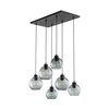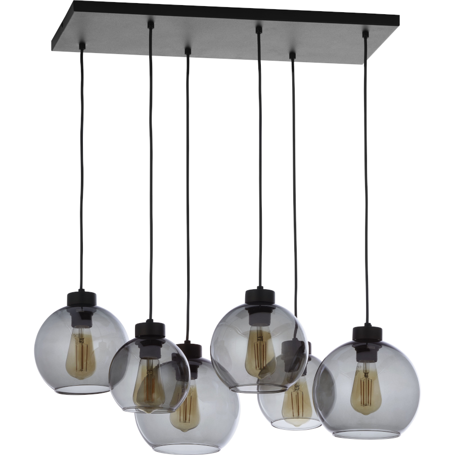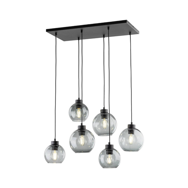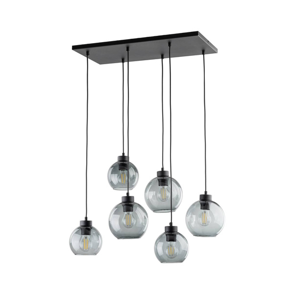 CUBUS GRAPHITE 2833 to nowoczesna lampa wisząca z sześcioma źródłami światła. Wykonana została z metalu w kolorze czarnym. Lampa posiada sześć szklanych kloszy w kształcie kul zwisających z prostokątnej podsufitki. Klosze są przeźroczyste i mają kolor grafitowy, dzięki czemu widoczne żarówki mogą być elementami ozdobnymi lampy dlatego warto wybrać ich dekoracyjny model. Lampa będzie idealnym wyborem do nowoczesnych wnętrz. Doskonale będzie się prezentować w: salonie, jadalni, sypialni, pokoju młodzieżowym, lokalu, gabinecie. Dużą zaletą jest możliwość regulacji wysokości. Wysokość maksymalna lampy to: 112 cm, szerokość 68 cm, głębokość 38 cm. Źródłem światła jest żarówka typu E27 o mocy max 60W w ilości 6 szt.