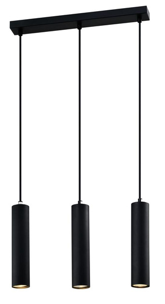 TUBO 33-79091 to stylowa lampa wisząca z trzema źródłami światła. Wykonana została z wysokiej jakości stali w kolorze czarnym. Oprawa będzie idealnym wyborem do wnętrz urządzonych w stylu nowoczesnym oraz minimalistycznym. Doskonale będzie się prezentować w: salonie, jadalni, sypialni, pokoju młodzieżowym, gabinecie, lokalu, kuchni. Dużym atutem jest możliwość regulacji wysokości. Wysokość maksymalna lampy to: 90 cm, szerokość 46 cm, głębokość 6 cm. Źródłem światła jest żarówka typu GU10 o mocy max 25W w ilości 3 szt.