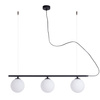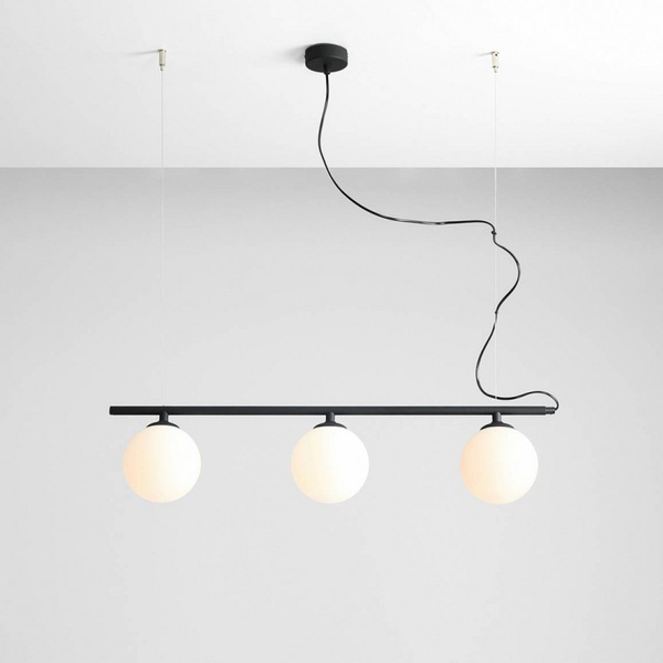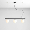 BERYL 3 1006E_1 to lampa wisząca z trzema źródłami światła. Korpus lampy wykonano z wysokiej jakości metalu w kolorze czarnym. Klosze są z białego szkła. Oprawa będzie idealnym wyborem do wnętrz urządzonych w stylu nowoczesnym oraz minimalistycznym. Doskonale będzie się prezentować w: salonie, jadalni, sypialni, pokoju młodzieżowym, lokalu, przedpokoju, kuchni. Dużą zaletą jest możliwość regulacji wysokości. Wysokość maksymalna lampy to: 90 cm, szerokość 80 cm, głębokość 14 cm. Źródłem światła jest żarówka typu E14 o mocy max 40W w ilości 3 szt.