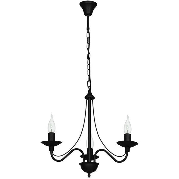 RÓŻA 3 397E_1 to lampa wisząca z trzema źródłami światła. Wykonana została z wysokiej jakości metalu w kolorze czarnym. Lampa nie posiada kloszy co sprawia, że odsłonięte żarówki są elementami ozdobnymi dlatego warto wybrać ich dekoracyjny model (najkorzystniej prezentuje się z żarówkami w kształcie świeczki). Lampa będzie idealnym wyborem do wnętrz urządzonych w klasycznym stylu. Doskonale będzie się prezentować w: salonie, jadalni, sypialni, gabinecie, lokalu, salach weselnych, bankietowych. Dużą zaletą jest możliwość regulacji wysokości. Wysokość maksymalna lampy to: 108 cm, szerokość 50 cm, głębokość 50 cm. Źródłem światła jest żarówka typu E14 o mocy max 40W w ilości 3 szt.