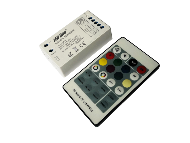 Kontroler może być sterowany za pomocą dołączonego do zestawu pilota VARIANTE RGB/RGBW