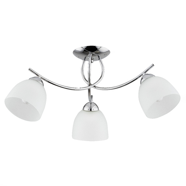 Wykonana z metalu pokrytego na srebrny kolor oraz klasycznych białych kloszy.