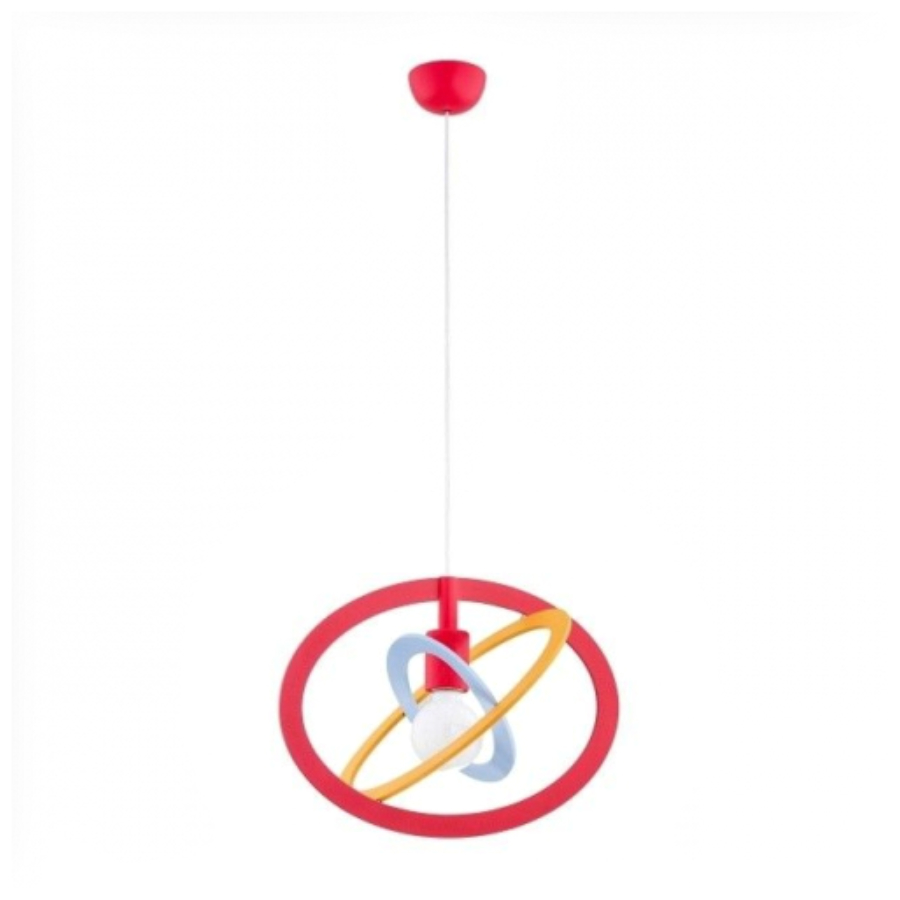 Naprzemienne elipsy z wyglądu przypominają atom, a ozdobna żarówka dodaje dodatkowego efektu.