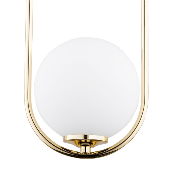 Wykonana została zestali lakierowanej na złoto oraz szklanego klosza.