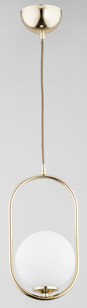 Wykonana została zestali lakierowanej na złoto oraz szklanego klosza.