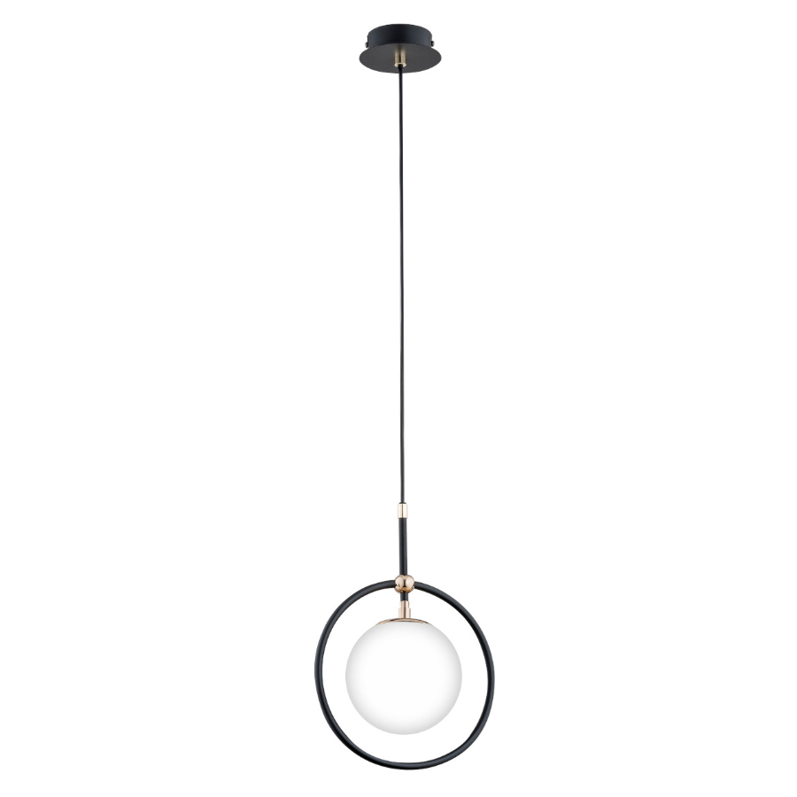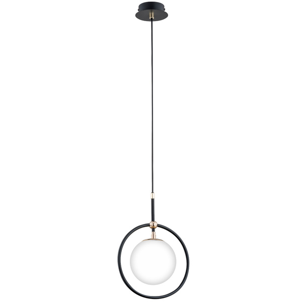 Wykonana została z lakierowanej stali oraz białego szklanego klosza zamkniętego w obręczy.