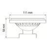 Zamiennik żarówek halogenowych o średnicy 111mm, do użytku zarówno w oprawach natynkowych jak i podtynkowych. Źródłem jest dioda COB obudowana soczewką generującą kąt 40°, zasilana napięciem 12V .