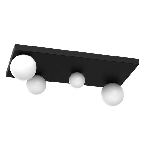 BIBIONE MLP8391 to stylowa lampa sufitowa z czterema źródłami światła. Korpus lampy wykonano z wysokiej jakości metalu w kolorze czarnym. Klosze są z białego szkła. Oprawa będzie idealnym wyborem do wnętrz urządzonych w nowoczesnym stylu. Doskonale będzie się prezentować w: salonie, jadalni, sypialni, pokoju młodzieżowym, gabinecie, biurze, lokalu, przedpokoju, korytarzu, kuchni. Wysokość lampy to: 15 cm, szerokość 60 cm, głębokość 30 cm. Źródłem światła jest żarówka typu G9 o mocy max 25W w ilości 4 szt.