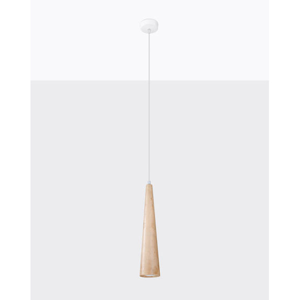SULA SL.1100 to stylowa lampa wisząca z jednym źródłem światła. Zawiesie lampy wykonano z wysokiej jakości stali w kolorze białym, klosz jest drewniany. Oprawa będzie idealnym wyborem do wnętrz urządzonych w stylu nowoczesnym oraz skandynawskim. Doskonale będzie się prezentować w: salonie, jadalni, sypialni, pokoju młodzieżowym, gabinecie, lokalu, kuchni. Dużym atutem jest możliwość regulacji wysokości. Wysokość maksymalna lampy to 120 cm, średnica 8 cm. Źródłem światła jest żarówka typu GU10 o mocy max 40W w ilości 1 szt.