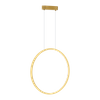 SATURNO ML8855 to stylowa lampa wisząca z jednym źródłem światła. Lampa składa się z aluminiowego złotego pierścienia zwisającego z podsufitki na stalowych linkach. Źródło światła znajduje się pod mlecznym paskiem z tworzywa. Oprawa będzie idealnym wyborem do wnętrz urządzonych w nowoczesnym stylu. Doskonale będzie się prezentować w: salonie, jadalni, sypialni, pokoju młodzieżowym, gabinecie, biurze, lokalu, przedpokoju, kuchni, łazience. Dużą zaletą jest możliwość regulacji wysokości. Wysokość maksymalna lampy to: 120 cm, szerokość 50 cm, głębokość 6 cm. Źródłem światła jest zintegrowany LED o mocy 28W, neutralnej barwie 4000K i jasności 1500lm.