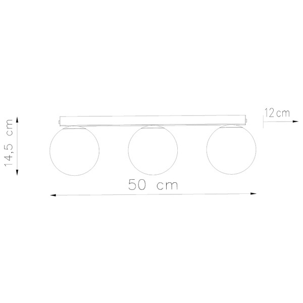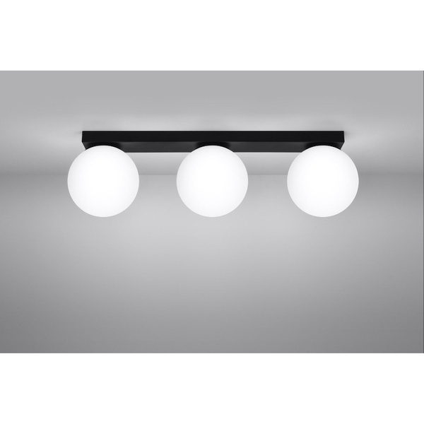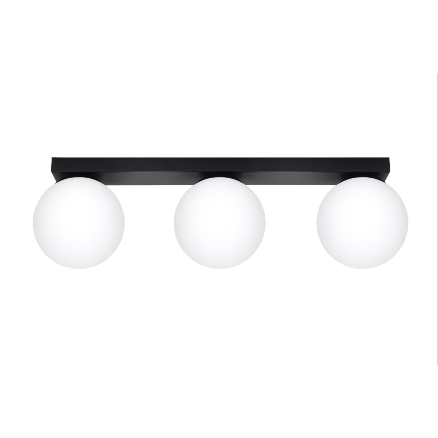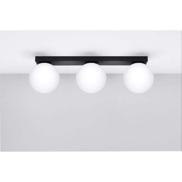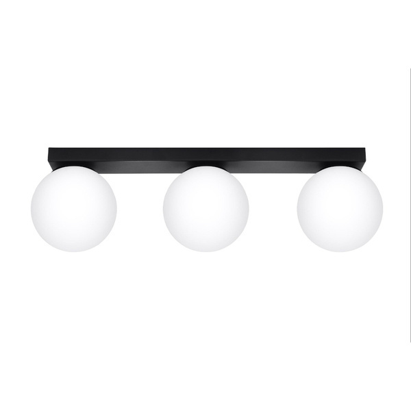 YOLI SL.1153 to stylowa lampa sufitowa z trzema źródłami światła. Lampa składa się ze stalowej podłużnej podsufitki w kolorze czarnym i osadzonych na niej trzech kulistych kloszy z białego szkła. Oprawa będzie idealnym wyborem do wnętrz urządzonych w stylu nowoczesnym, industrialnym, loftowym a także skandynawskim. Doskonale będzie się prezentować w: salonie, sypialni, jadalni, pokoju młodzieżowym, gabinecie, biurze, lokalu, przedpokoju, korytarzu, kuchni. Wysokość lampy to: 14,5 cm, szerokość 12 cm, długość 50 cm. Źródłem światła jest żarówka typu G9 o mocy max 40W w ilości 3 szt.