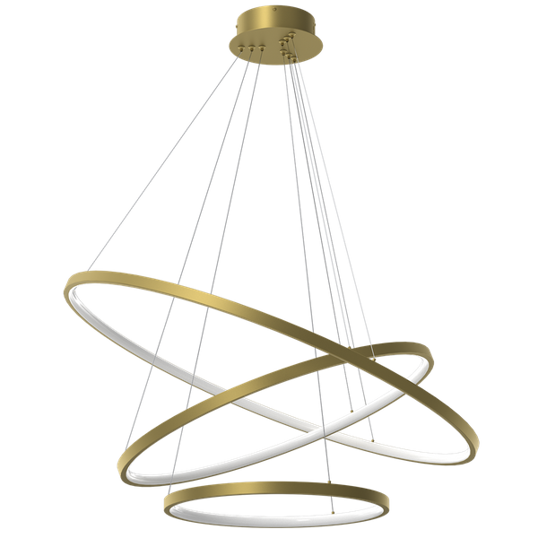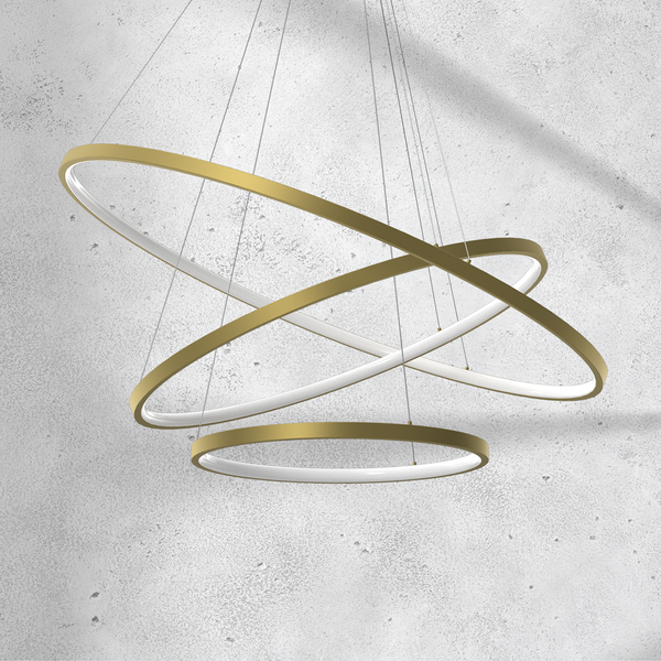 Lampa ROTONDA wyróżnia się trzema okrągłymi oprawami, wykończonymi w złotym kolorze. Całość zaprojektowana w prostej, a zarazem oryginalnej stylistyce. Niezwykle estetyczna forma sprawia, że lampa będzie doskonałym uzupełnieniem stylowych, minimalistycznych wnętrz. Idealnie sprawdzi się jako część wystroju salonu, jadalni i pokoju gościnnego.