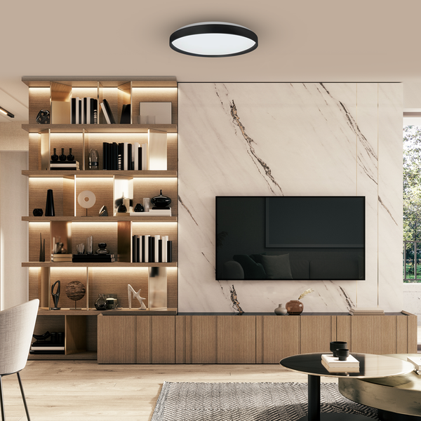 Ta niezwykła plafoniera o średnicy 390 mm to połączenie nowoczesnego designu z kolorową magią. RINGO RGB oferuje pełen zakres barw RGBW, co oznacza, że możesz dostosować oświetlenie do swojego nastroju i potrzeb. Wszystko to jest sterowane za pomocą pilota, co sprawia, że zmiana kolorów staje się prosta i przyjemna.