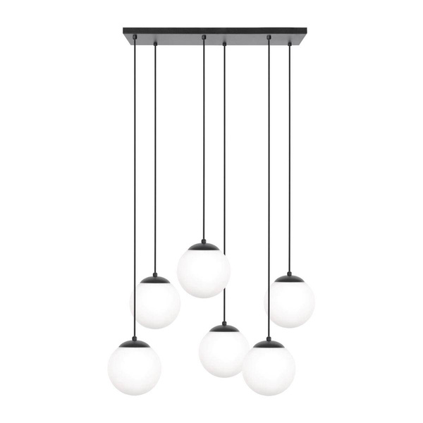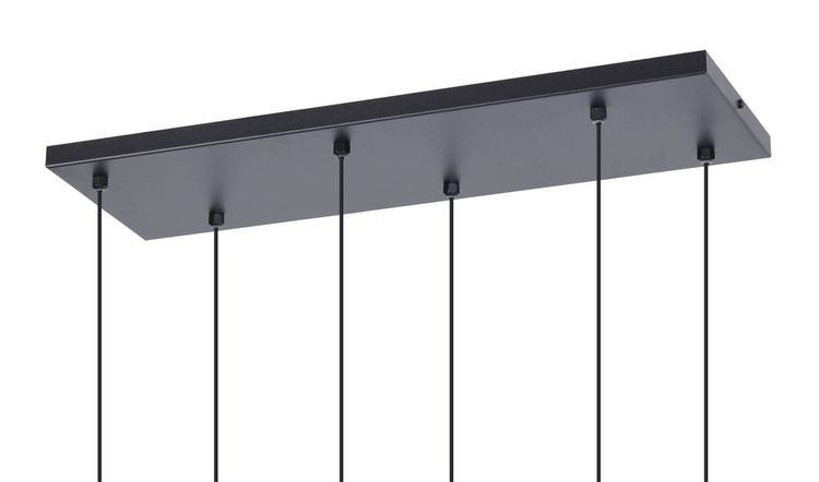 Żyrandol K-4748 z naszej nowej serii CAMINA to idealna propozycja oświetleniowa dla Twojego domu. Aż sześć źródeł światła zostało umieszczonych na przewodach, wychodzących z podłużnej podsufitki o długości 60 cm. Każdy ze zwisów ma możliwość regulacji długości, dzięki czemu możesz stworzyć niepowtarzalną kompozycję pod swoim sufitem. Źródła światła osłonięto kloszami o średnicy 16 cm. Dzięki swoim rozmiarom, lampa nie przytłoczy wnętrza, ale nada mu elegancji i nowoczesnego wydźwięku. Lampa takiej budowy sprawdzi się świetnie nad stołem w jadalni bądź wyspą kuchenną. Kształt kaskady podkreśli podłużne blaty i dokładnie je doświetli.